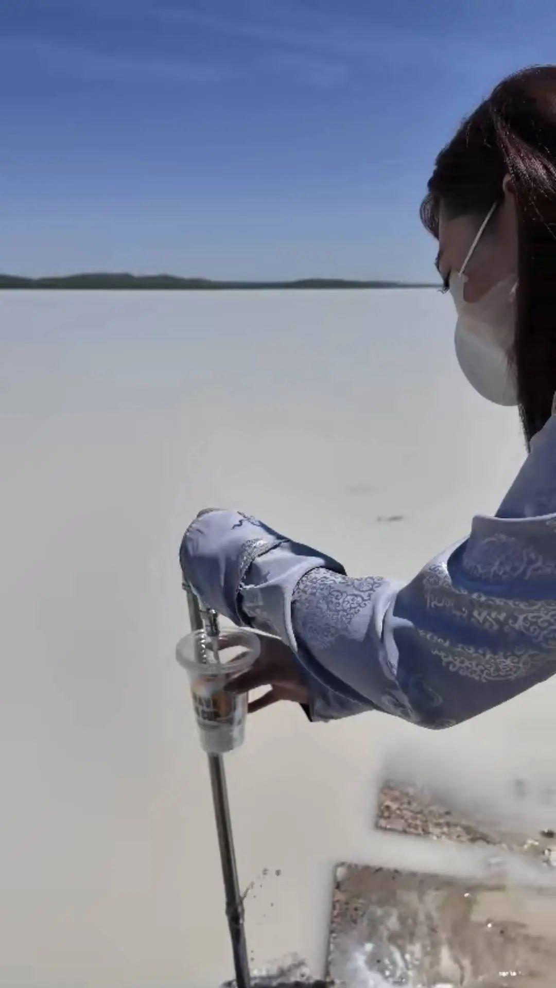 “内蒙古一直被大家调侃‘水龙头流的都是牛奶’,既然是‘牛奶湖’,我们就创作了这样一个水龙头里接牛奶的打卡项目。”锡林郭勒盟文旅局宣传科科长赵东龙解释,牛奶湖是天然的碱水湖,其中的碳酸钙等矿物颗粒在湖水流动过程中被不断地搅起、悬浮,因此湖水常年呈现出牛奶般温润的色泽。这样的湖水自然是喝不得的,而游客们排队从水龙头里接的牛奶,则是从超市采购的纯牛奶。